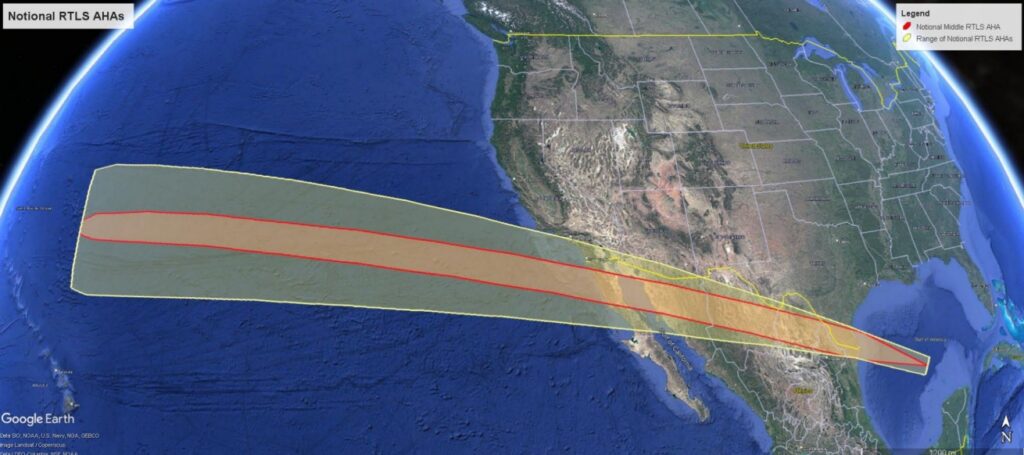 Starship on its IFT-10 mission makes its controlled powered approach to a splashdown in the Indian Ocean. The orange colour was caused by oxidation during a metal thermal protection tile test. Courtesy: Elon Musk/X [/caption]Starship test flights have - to date - started from Starbase, Boca Chica, in Texas. The upper stage usually then takes a south-east trajectory towards an eventual splashdown landing in the Indian Ocean. However, for fully reusable orbital flights, Starship will try to launch eastwards - using a path over Florida or the West Indies. The spacecraft must return to the launch site where the Super Heavy booster will be recovered, using the famous chopstick arms of the launch tower, while the Starship vehicle will land as close as possible to the pad. To make this return from orbit Starship will be forced to fly over Mexico on its approach from the west. Anticipating the concern that this is likely to raise for civilians, the rocket company has turned its attention to designing a return trajectory that will be as safe as possible. [caption id="attachment_123666" align="alignnone" width="1024"]