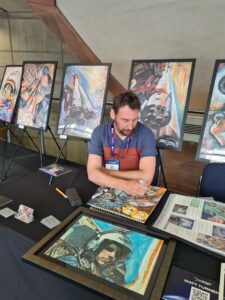 Matt Turner, an artist whose work is inspired by space, continued to work on his collection at the conference, while onlookers admired his exhibition. Courtesy: Farah Ghouri[/caption] The nation has become increasingly reliant on the space industry, with fears over its security. The UK would risk losing about £1 billion per day for the first week alone, if GPS was disrupted, Bate said. Several new initiatives were announced in Manchester. The UKSA has awarded £4.5 million for four new projects focussed on satellite communications. These include funding for: